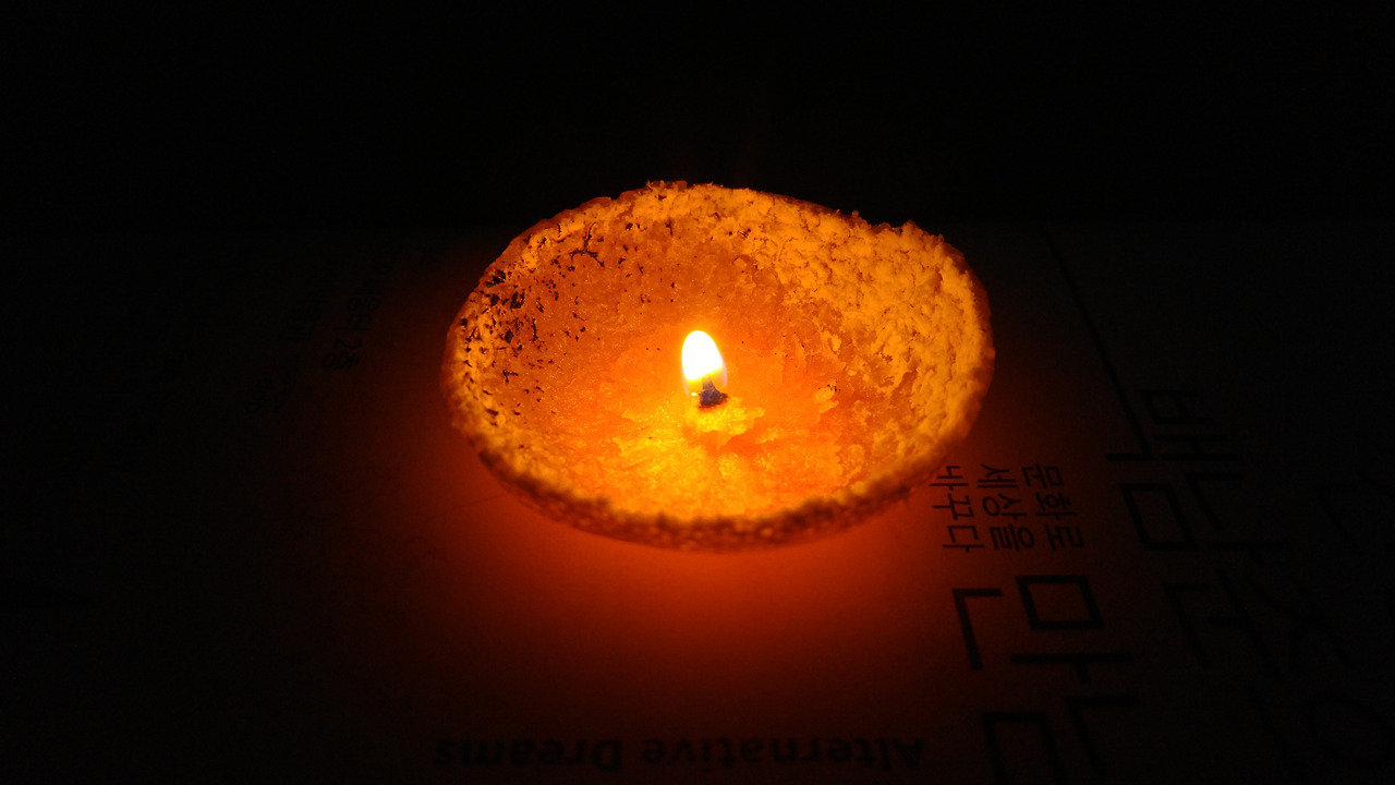 귤 껍질에 불을 댕기니
