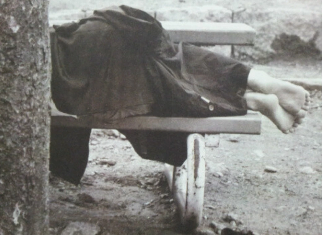 무엇보다 흑백사진 속 벤치에 모로 누운, 스커트 밖으로 빼꼼히 나온 어느 여인(심상의 의도된 착시다)의 두 발, 그리고 벤치 아래 놓인 낡은 구두. 그저 누군가의 뒷모습일 뿐인데. 노숙자들이 으레 그렇듯 이불삼아 후줄근한 점퍼가 덥혀진 세상. 누군가의 맨발을 보는 건 처절하고도 서글프다.