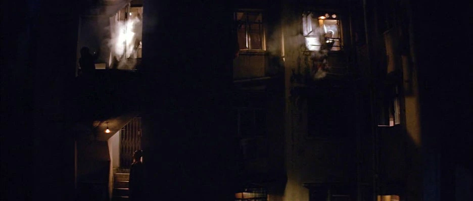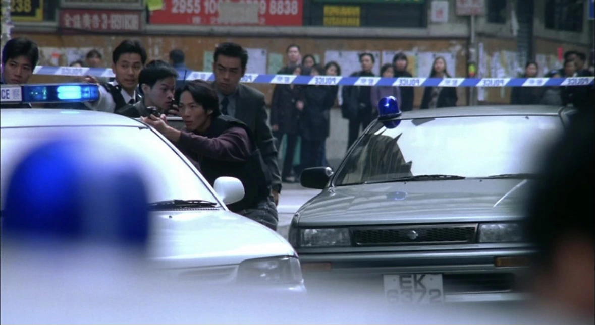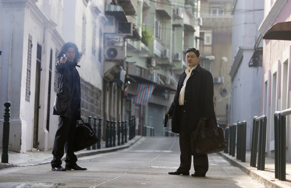 두기봉 감독의 영화는 사실 원경의 사용보다 노련한 롱테이크 씬으로 더 유명하다. 여전히 최고의 총격전 중 하나로 언급되는 <익사일>의 마지막 시퀀스나 <문작>의 우중 소매치기 대결 시퀀스는 몇 번을 다시 봐도 근사하다. 그러나 개인적으로 두기봉 감독 작품의 독특한 정서를 쌓아 올리는 주요 장치는 바로 원경의 사용에 있다고 생각하고 있다. 사실 <익사일>의 그 유명한 총격전보다 강렬하게 내 시선을 빼앗겼던 시퀀스는 바로 그 직전의 건물 탈출 시퀀스다. 얽히고설킨 인물들의 비장한 난투전을 다양한 시점으로 조립해 보여줬던 마지막 총격전보다도 부상당한 동료를 데리고 건물에서 탈출하는 그 직전의 총격씬이 정말로 충격적으로 좋았다. <익사일>는 부상당한 장가휘를 찾지 못한 채 건물을 뛰어 내려가는 주인공들의 총격전을 긴 원경으로 보여준다.