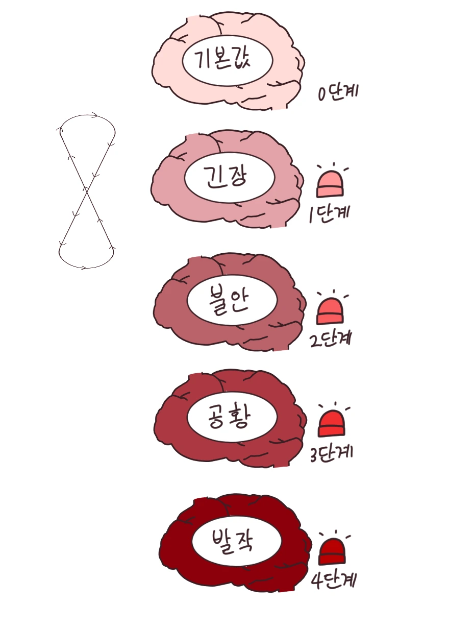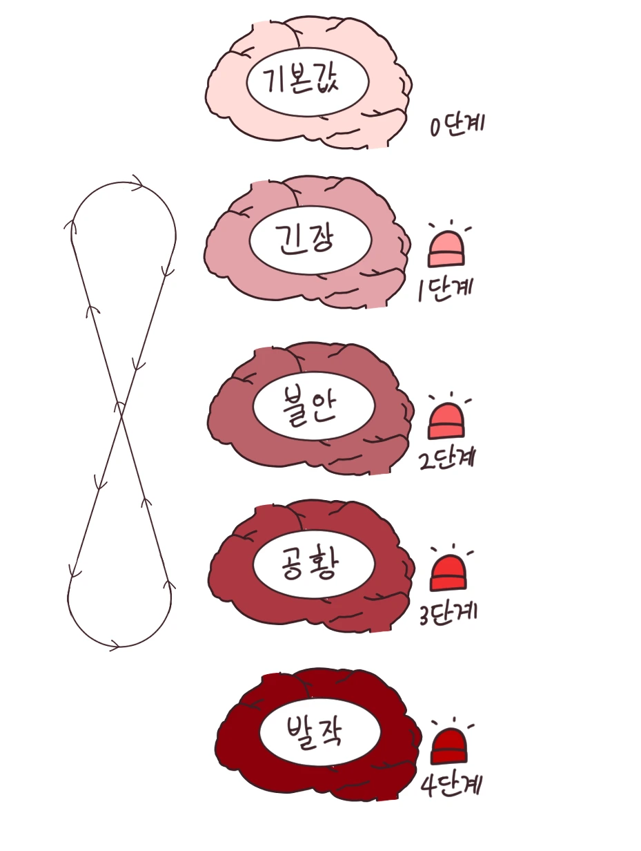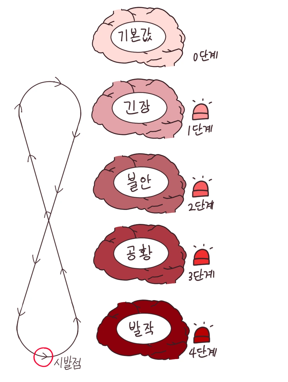 발작 이후 공황장애를 진단받고 나서 난 내가 죽는 병이 아니라는 것을 알았고 더 이상의 공황발작을 겪지 않았다. 물론 그 직전까지는 몇 번이고 갔었지만 더 이상 심장마비나 죽음 그리고 미치는 것 등의 인지오류는 겪지 않았고 그로 인해 나는 발작의 직전에서 안절부절못하며 통제불가의 상황(3단계)만을 겪게 되었다.