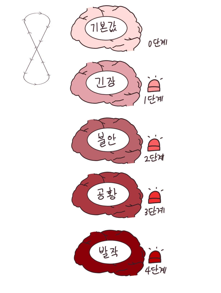 이 일련의 사건은 내가 다시 단계를 올라가지 않는 상태가 되는데 매우 중요했다. 4단계는 죽는 것이 아니다라는 것을 온몸으로 알게 되었기 때문이었다. 나는 분명 발작을 겪었고 아무 일도 일어나지 않았으며 그 직후에 내 몸의 문제가 아니라는 확신이 생겼던 것이다. 발작의 순간에는 인지오류를 겪었지만 그 순간에도 이성의 끈은 몸의 이상이 아닐 거라는 확신과 반복된 병원검사의 결과를 믿고 있었기 때문이었다.