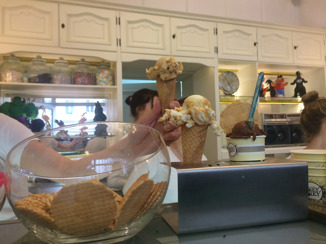 메인 아이스크림 호키포키 맛, 프랑스 초콜릿 맛 그리고 캐러멜 바다소금 맛을 골라 순식간에 먹었다.