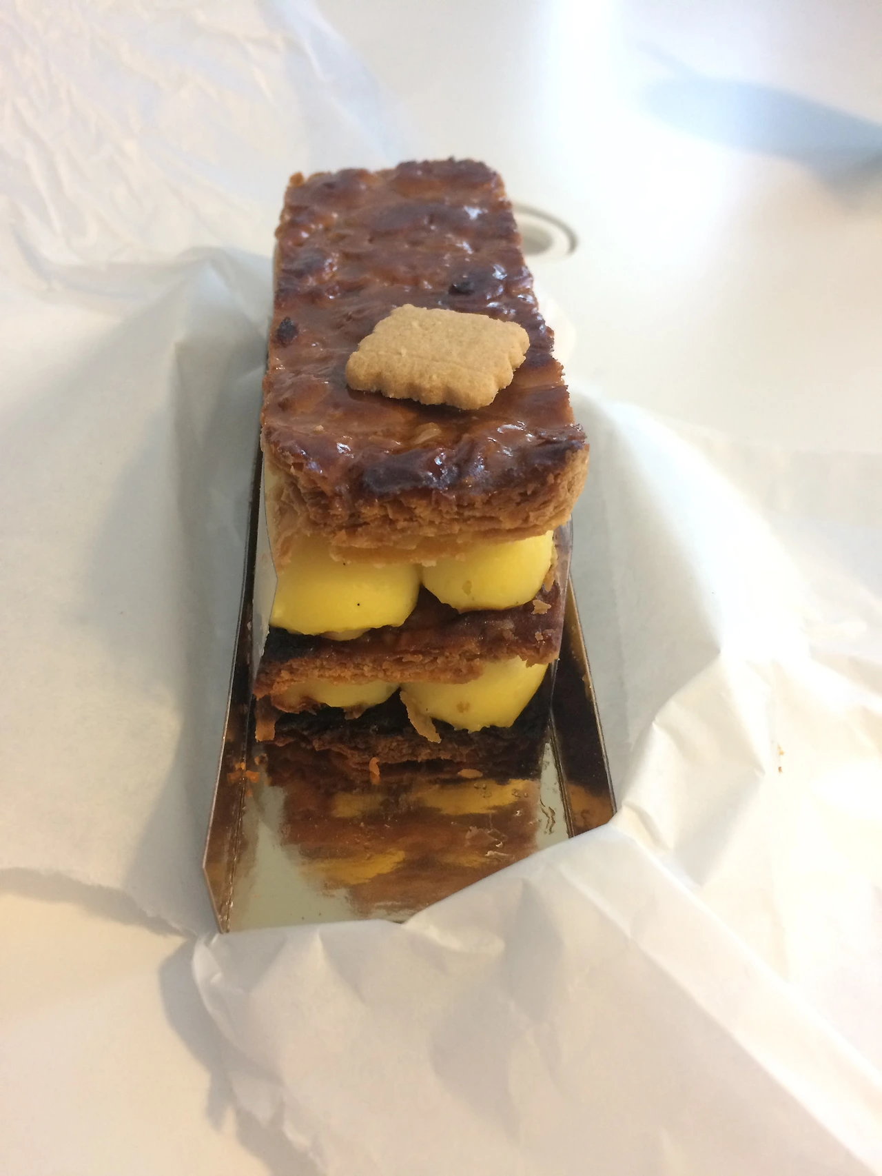 나는 밀푀유를 5번은 말한 것 같다. 결국 그를 데리고 가 손가락으로 집어 주었다. 그는 마치 유레카가 연상되는 표정을 지으며 나에게 밀이 뭐고 푀유가 뭔지에 대해서도 장황하게 불어와 영어를 섞어가며 알려주었다. 2번이나 발음을 교정시켜 주며 퍼펙트를 끝으로 결제를 도와주었다.;;;