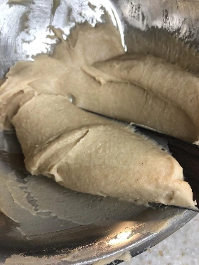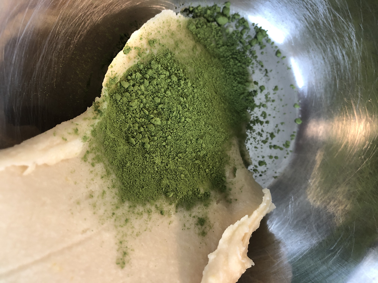 짜는 주머니에 톱니 깎지 와 벚꽃 깍지를 끼워 반죽한 앙금을 넣고 원하는 모양으로 짜준다. (앙금이 바닥에 달라붙을 수 있으므로 종이 포일이나 테프론 시트를 깔고 짜주는 것을 추천한다.)