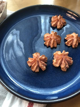 우리 집 전기 오븐은 180도 15분으로 구울 수 있었다. 오븐 온도는 제품에 따라 다르므로 10분 내외로 색을 봐주어 온도를 설정하면 된다. 과자의 색을 골고루 예쁘게 하려면 5분 정도 남겨두고 팬의 위치를 바꿔주면 전체적으로 균일한 색의 과자를 만들 수 있다.