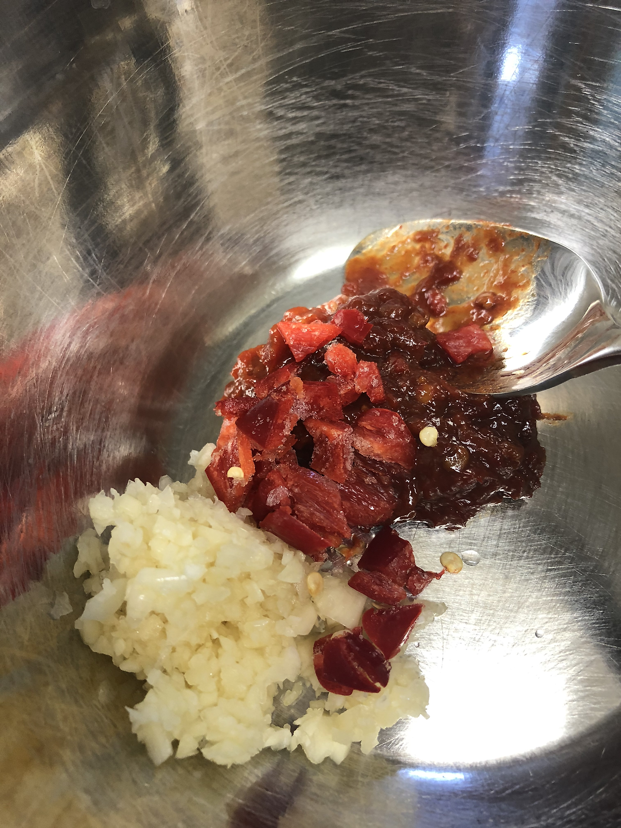 홍고추와 마늘은 굵은 입자가 보일 정도로 다져 이용한다.