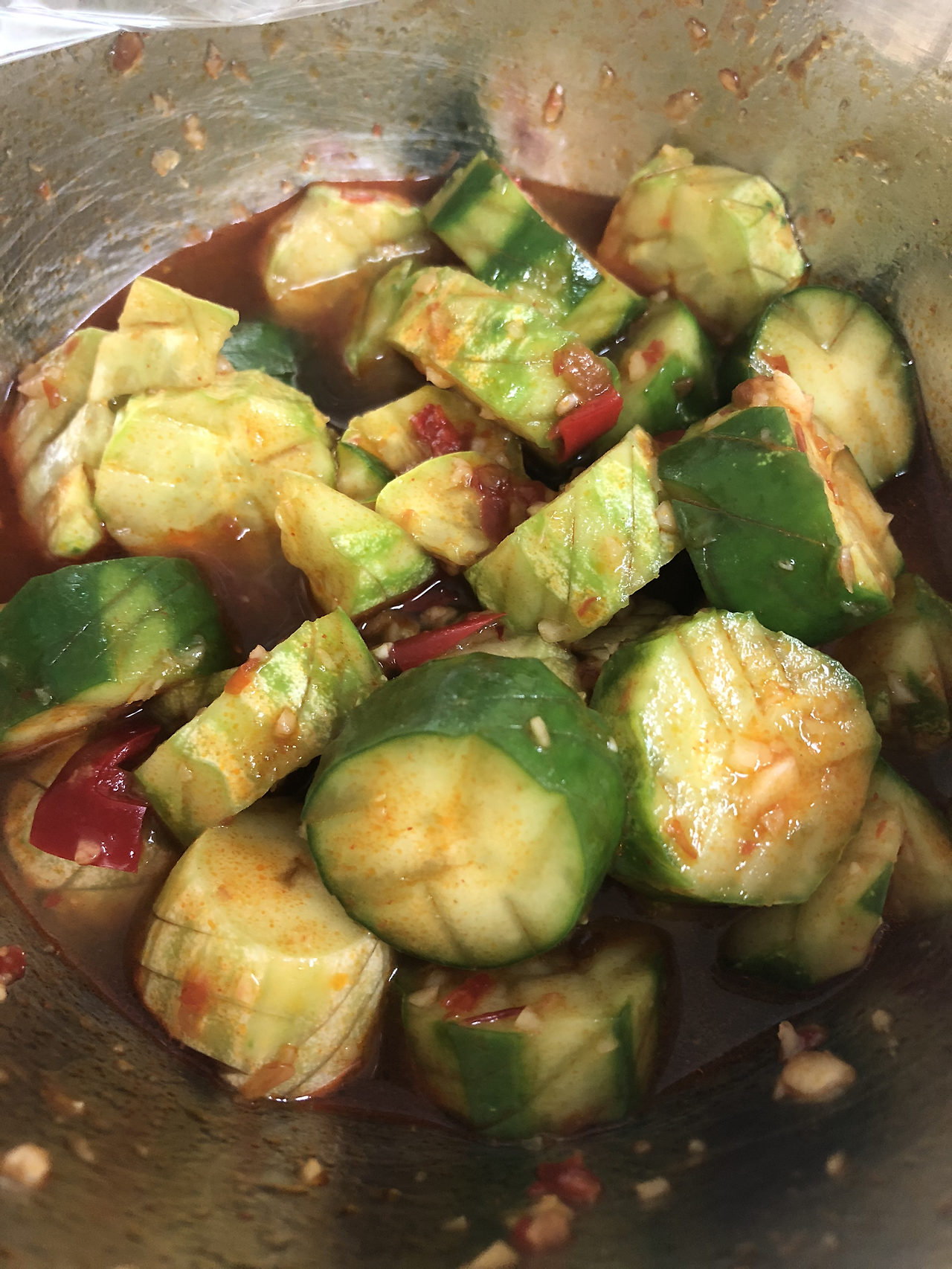 무는 종종 들었다 놨다 할 수 있는 가격이나 배추는 다른 채소를 대체해 볼 생각을 먼저 하게 된다. 그 와중에 지인이 알려준 중국식 오이절임(김치?)을 먹어보았고 지금 당장은 이게 좋겠다 싶었다.
