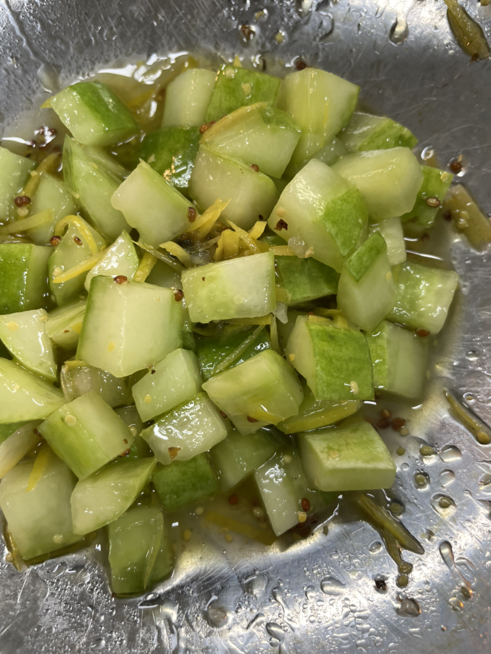 오이는 미리 만들어 둔 소스에 섞어 맛을 베이게 한다.