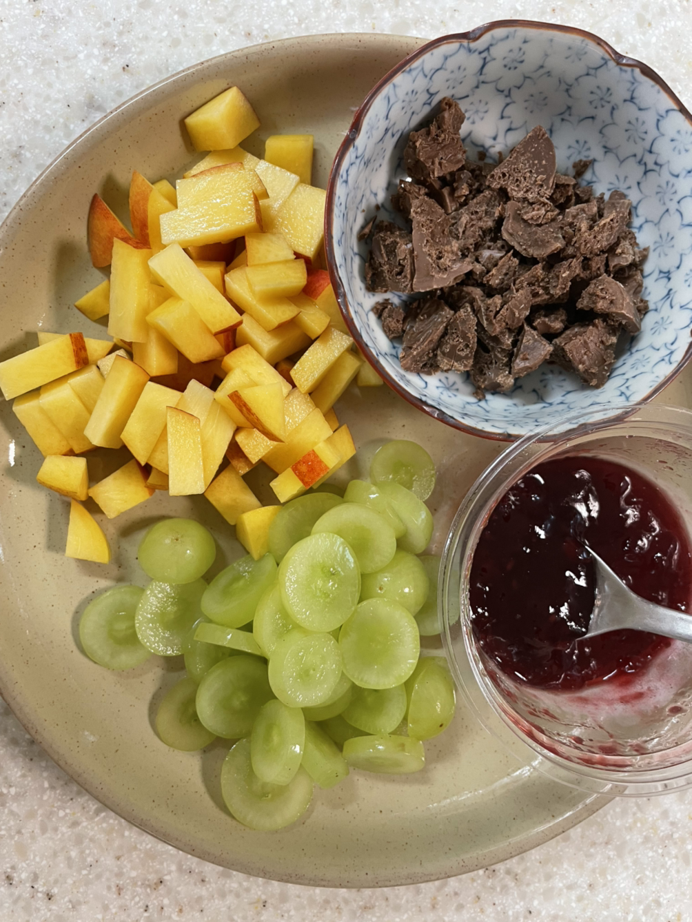 3. 과일 썰기 및 초콜릿 부수기 (엄마 일)