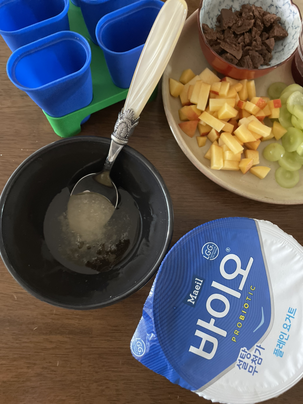 과일 (좋아하는 것 - 팁은 얼려도 맛있는 것을 선택하는 것이 좋다. 사과는 땡!)