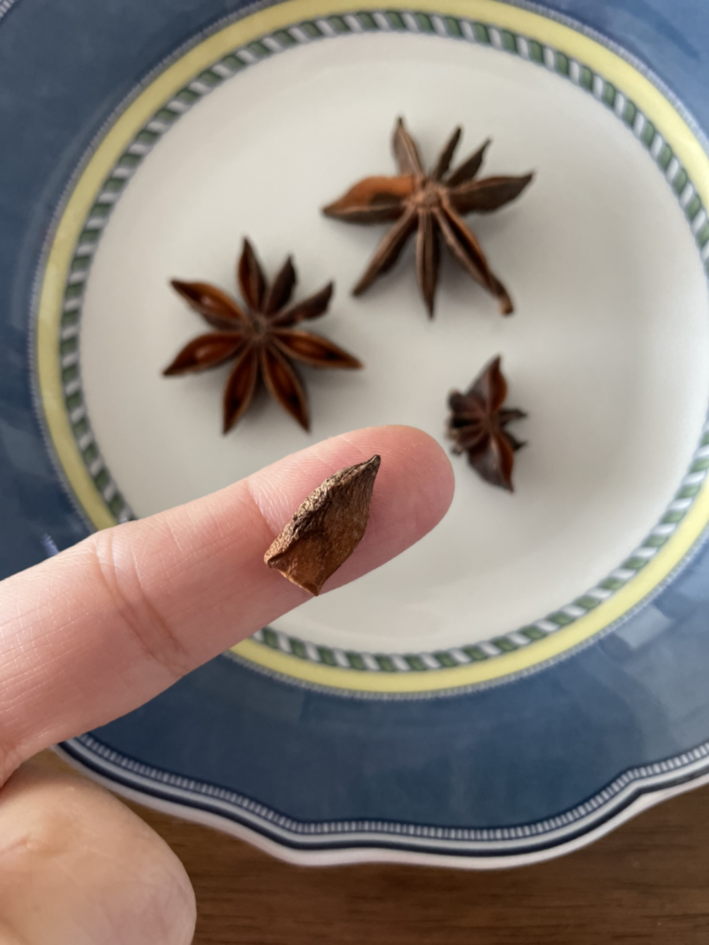 보통 돼지의 잡내를 충분하게 잡아줄 수 있는 향신료이기 때문에 어마어마한 향을 품고 있습니다. 여덟 개의 날개가 있기 때문에 1~2개를 떼어 사용해도 좋고 아예 추가하지 않아도 무리가 없습니다.