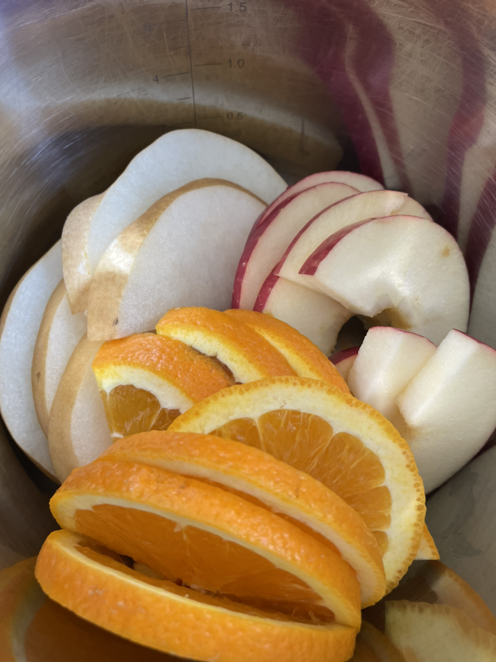 1. 높이가 있는 냄비에 과일을 담고 약불로 먼저 달궜습니다.