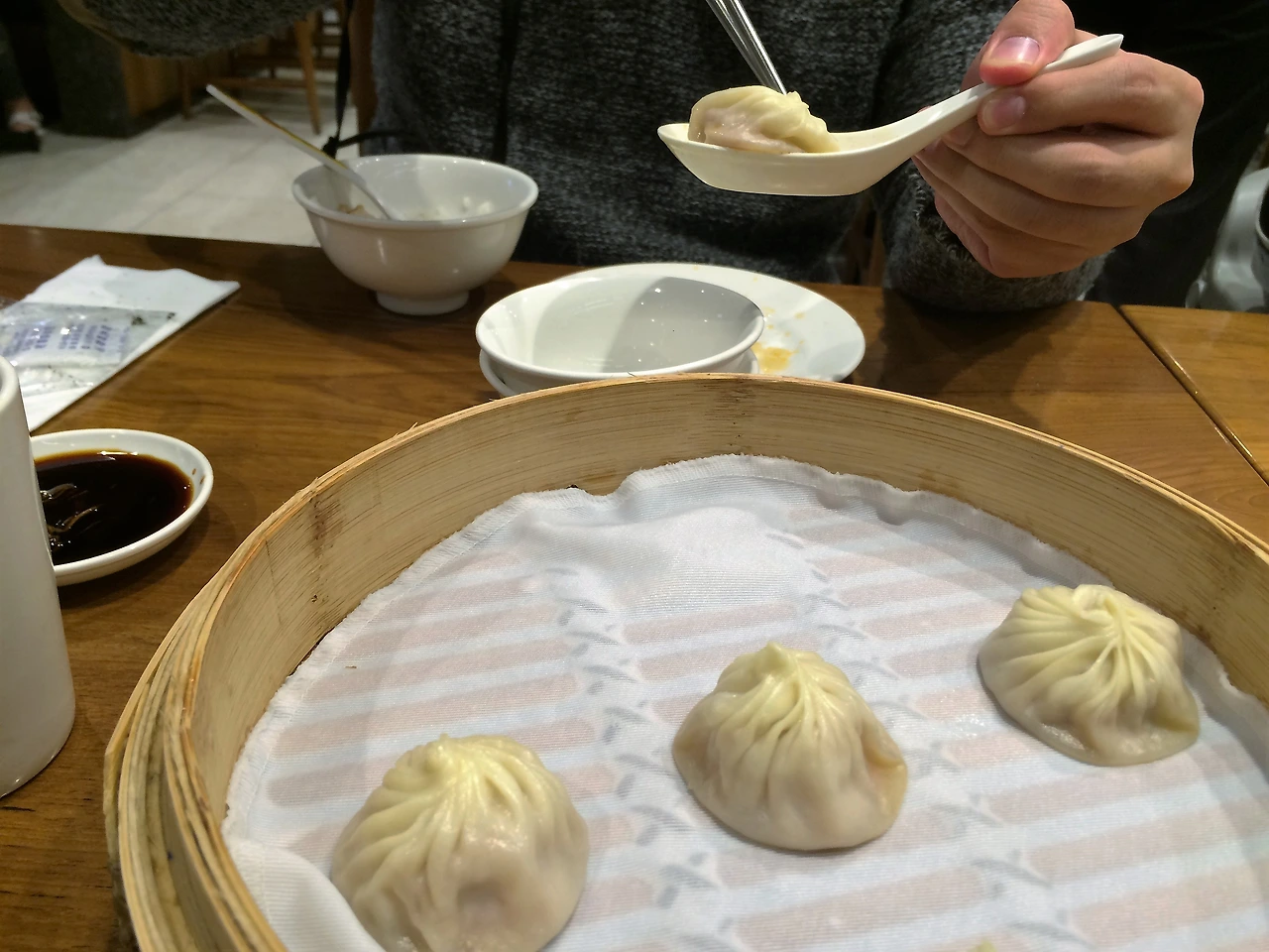 우선 닭고기 샤오롱바오와 새우 돼지가 들어간 만두 그리고 우육탕과 튀긴 돼지고기 그리고 쌀밥을 시켰다.