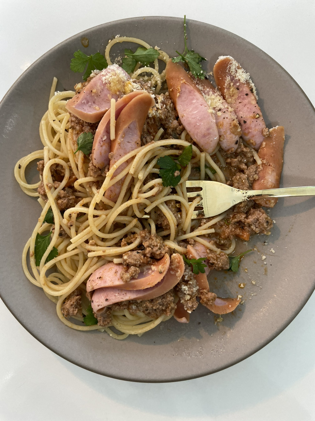 1. 익힌 스파게티 위에 바로 부어 비벼먹기