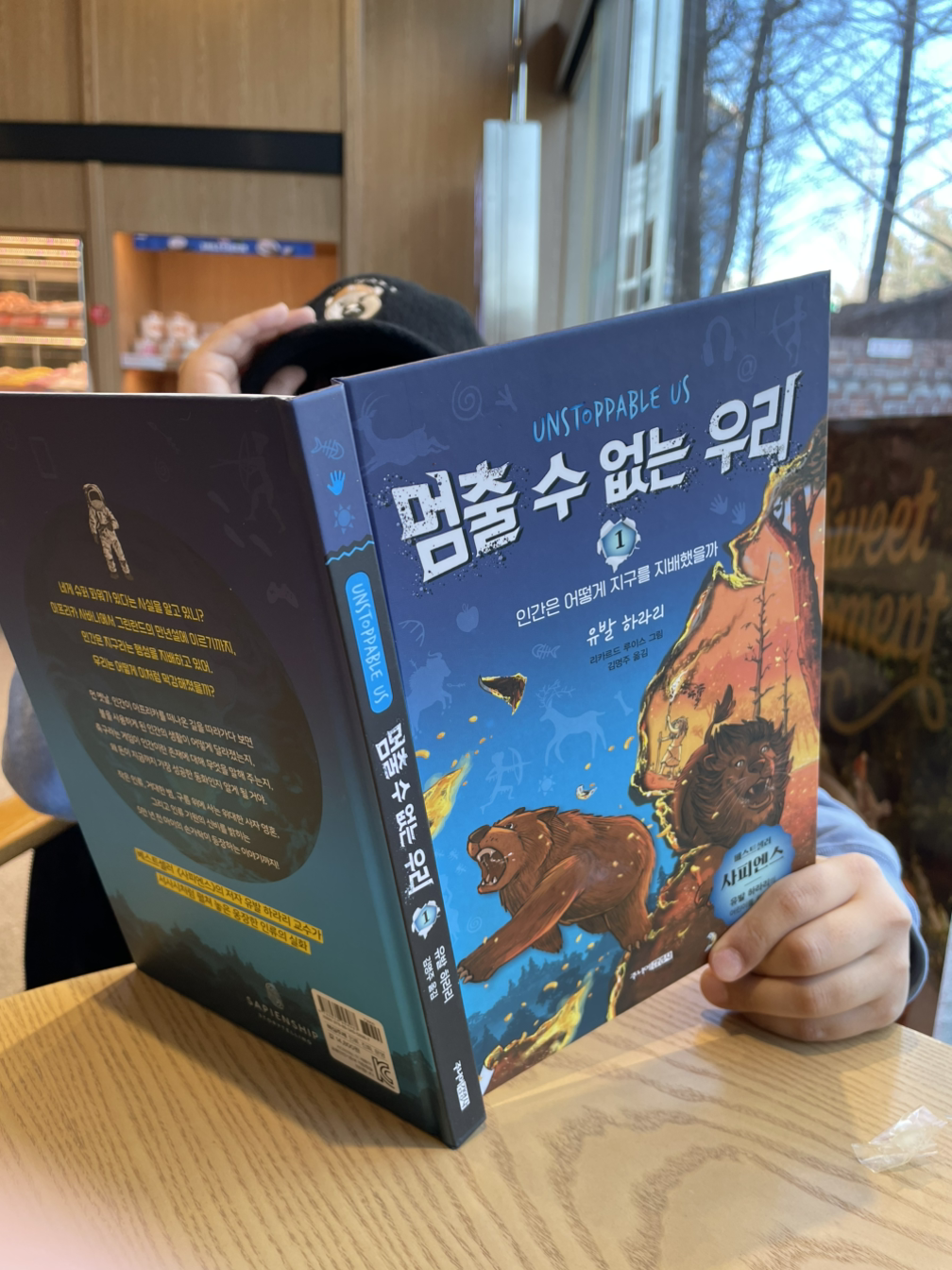 책방에 들러 아이가 원하는 책 1권(흔한 남매 18), 추천 도서 1권(멈출 수 없는 우리), 그리고 사장학 개론 책과 문구점만 가면 사 모으는 카드 몇 개를 골라 계산을 했습니다.
