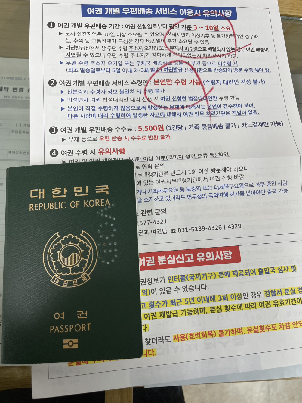 만약 유효기간이 남아 있는 여권이 없다면 신분증을 지참하면 된다는 사실을 알게 되었습니다. 수령 시 택배비를 지불하면 집에서 편리하게 받을 수 있습니다.