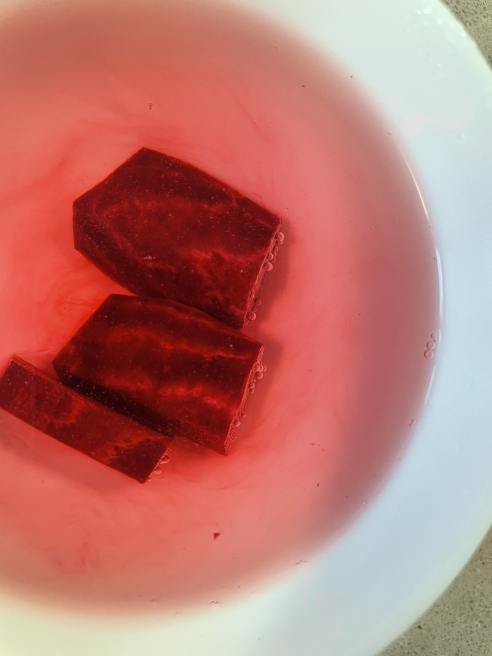 4. 전자레인지용 그릇에 비트가 잠길 정도의 물을 부은 후 2분 동안 비트를 익힙니다.