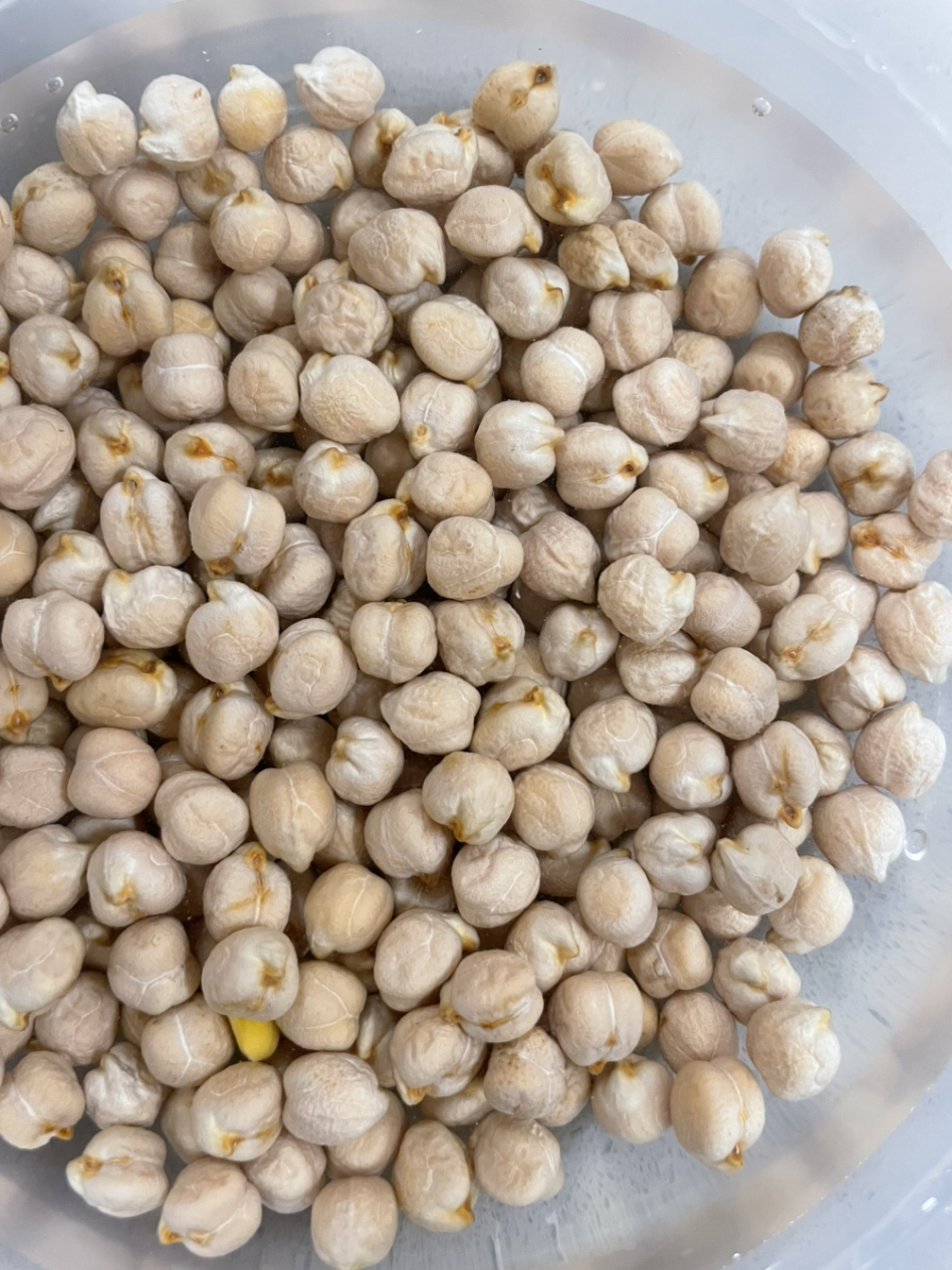 1. 병아리 콩은 깨끗이 씻은 후 병아리콩의 2배의 물을 붓고 8시간 이상 불립니다.