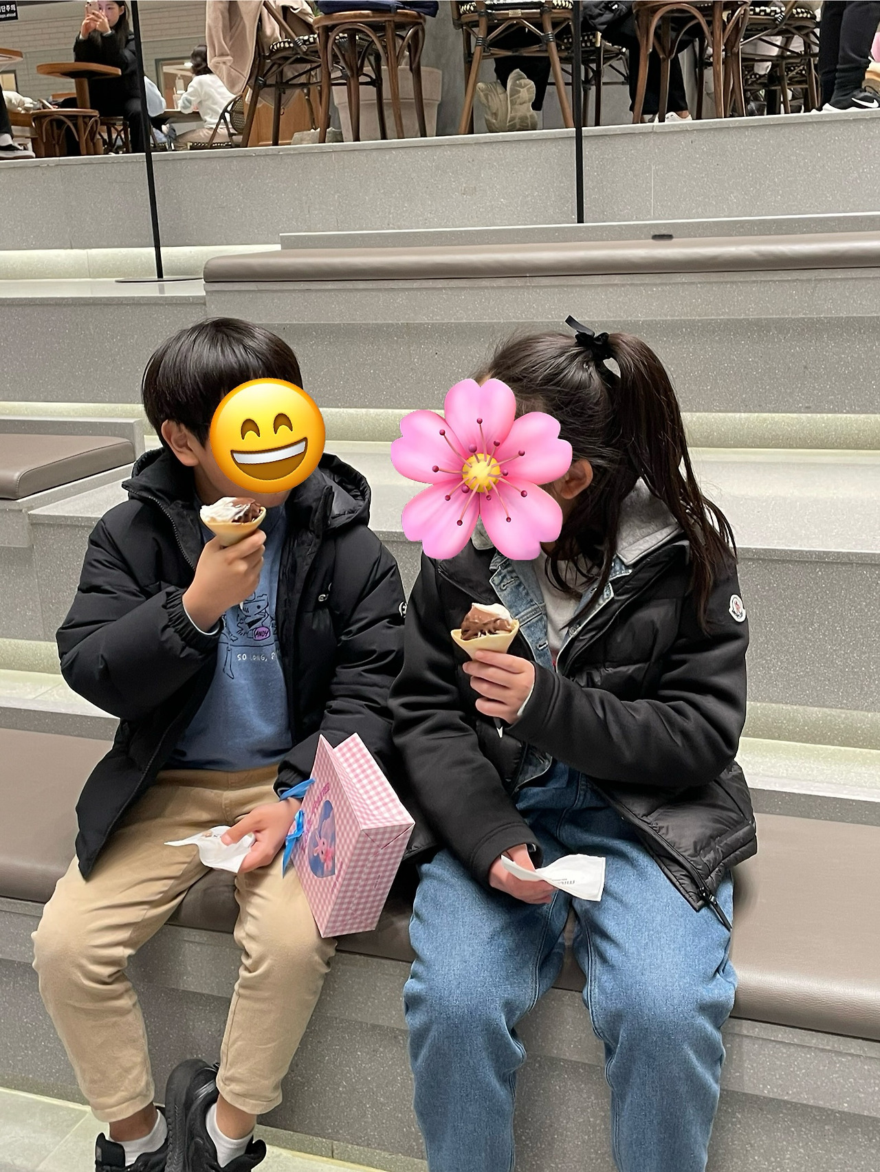 영화가 마친 후 헤어짐이 아쉬운지 서로 시간을 끌길래 아이스크림을 사주었더니 참 예쁘게도 먹으며 재잘재잘합니다.