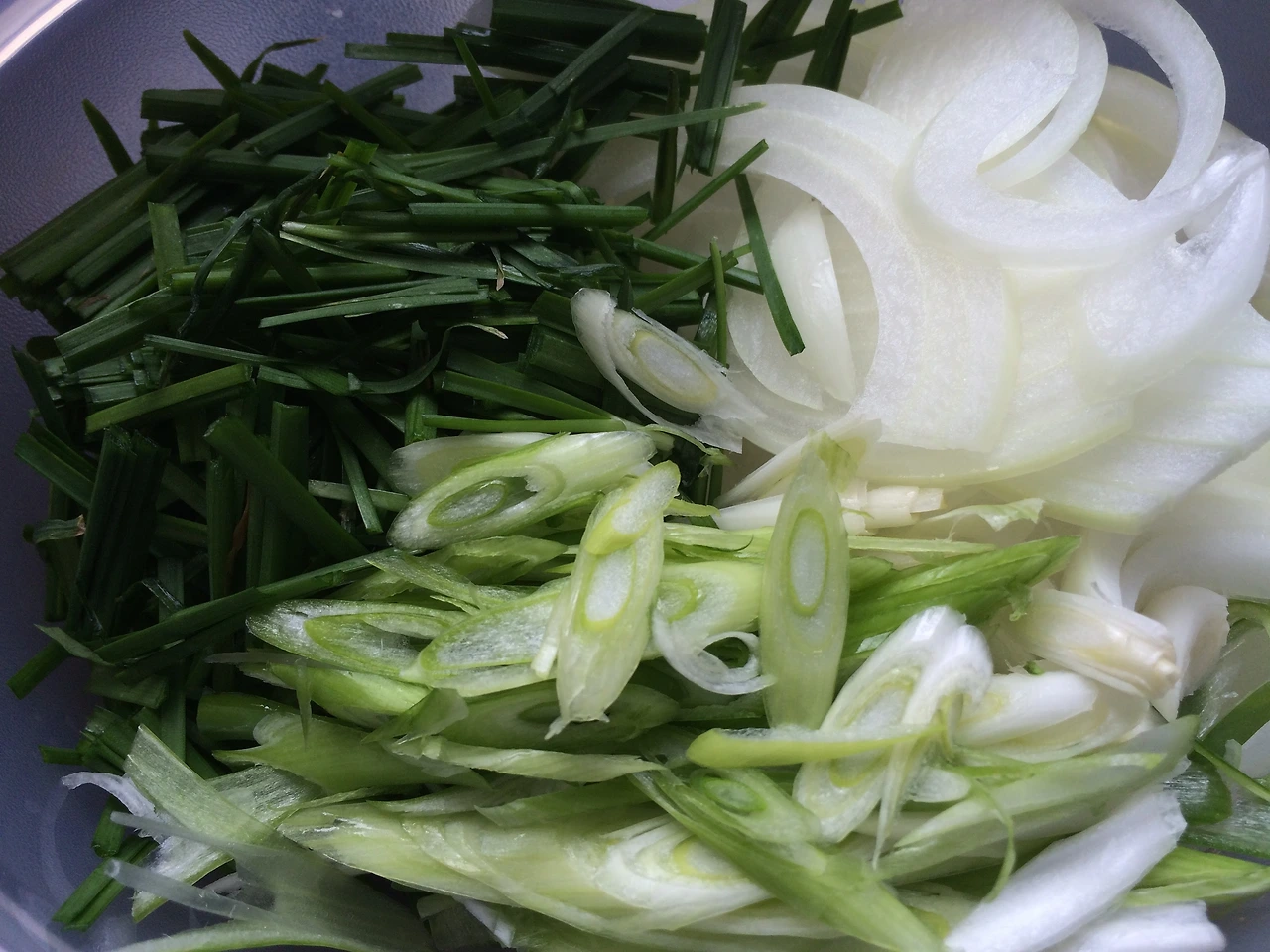 부추, 양파, 파도 적당한 크기로 잘라 준비한다.