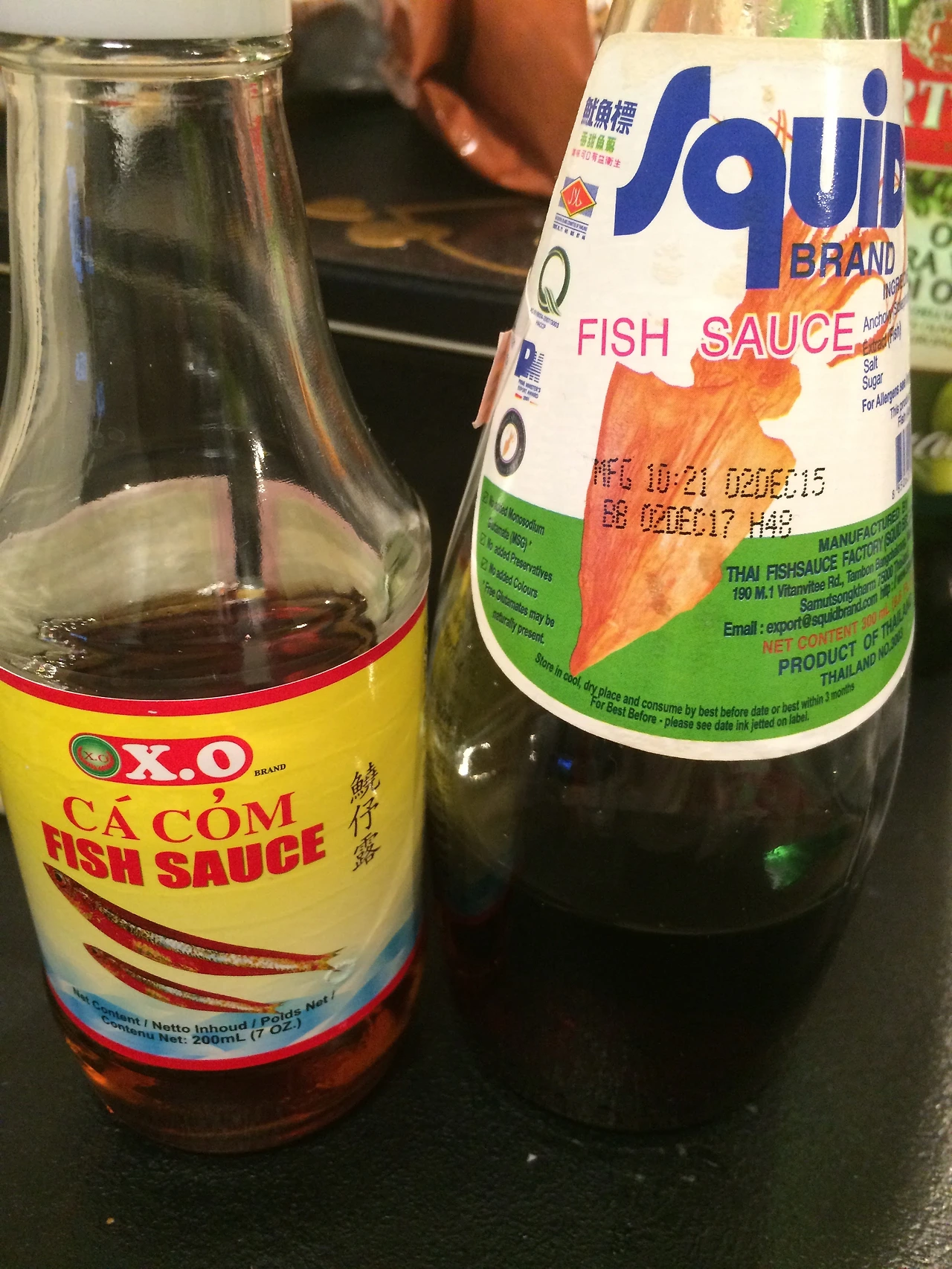 * XO생선소스와 오징어 소스(이건 한국에서부터 사용해왔는데 국의 간을 하기에 좋은 조미료다)를 7:3의 비율