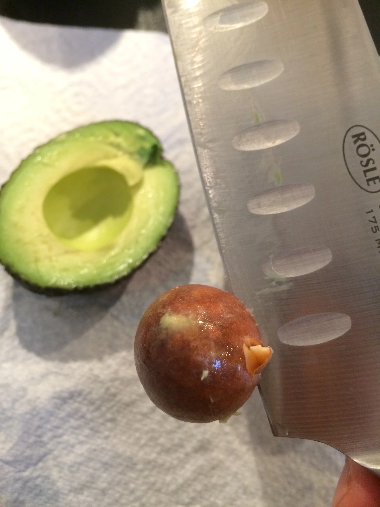 그 씨를 축으로 칼로 빙그르르 돌려주고 비틀면 두 개가 분리가 된다.
