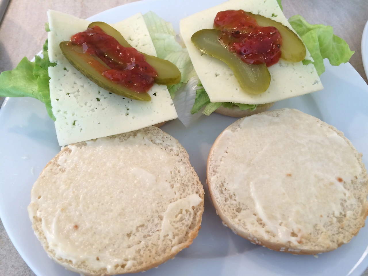 번을 준비하고 기호에 따라 마요를 바르거나 겨자를 바른다.