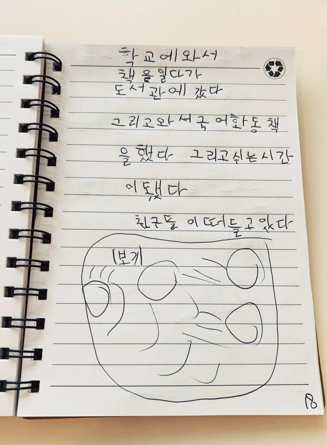 내성적일 수록 말이나 몸짓으로 크게 표현하는 대신 도구를 활용하는게 편할 때가 많다. 딸은 친구들과 노는 것도 좋아하지만, 친구들을 관찰하고 생각하며 그 공간 안에 함께 하는 것 자체로 기뻐할 때가 많다. 아이는 오늘도 여전히 글을 쓰며 친구들의 이야기를 전하고 싶어하고, 그림을 그리며 생각을 표현한다. 엄마는, 왜 너는 친구들과 어울리지 않니? 라는 말 대신 친구들과 함께 놀고 싶으면 여기서 좀 쉬다가 다가가 보면 돼, 엄마가 같이 있어 줄게 라고 말한다.