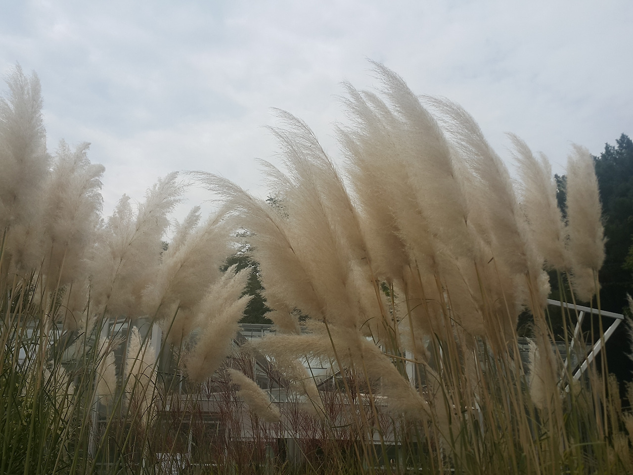 유난히 뜨거웠던 여름이 지나간 자리에 가을이 찾아왔어요. 서늘해진 공기, 파란 하늘을 따라 걷다 보니 팜파스 그라스를 만났어요. 사람 키보다 훨씬 큰 키를 가진 이 식물은 남아메리카 넓은 평원에서 왔어요.