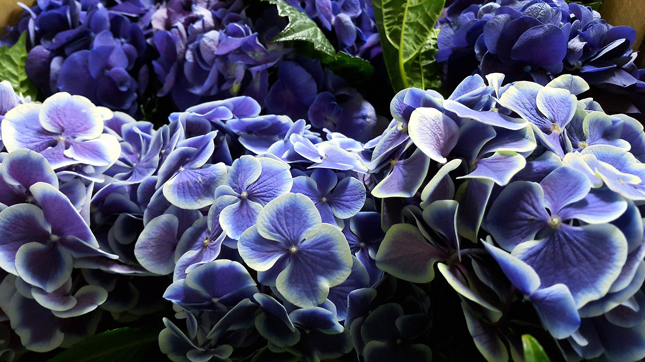 수국은 신기한 꽃이죠. 토양 산성 정도에 따라 흰색에서 파랑, 분홍, 보라 등으로 색깔이 변합니다. 늦봄에서 초여름에 우리들의 정원을 가꿔주는 꽃, 신랑 신부의 결혼식에서는 식장 분위기를 풍성하고 화사하게 꾸며주는 꽃이죠. 우울과 파란색이 서로 대응관계를 이루는 이미지를 갖고 있어서 오늘은 '파란 수국'을 들고 왔어요.