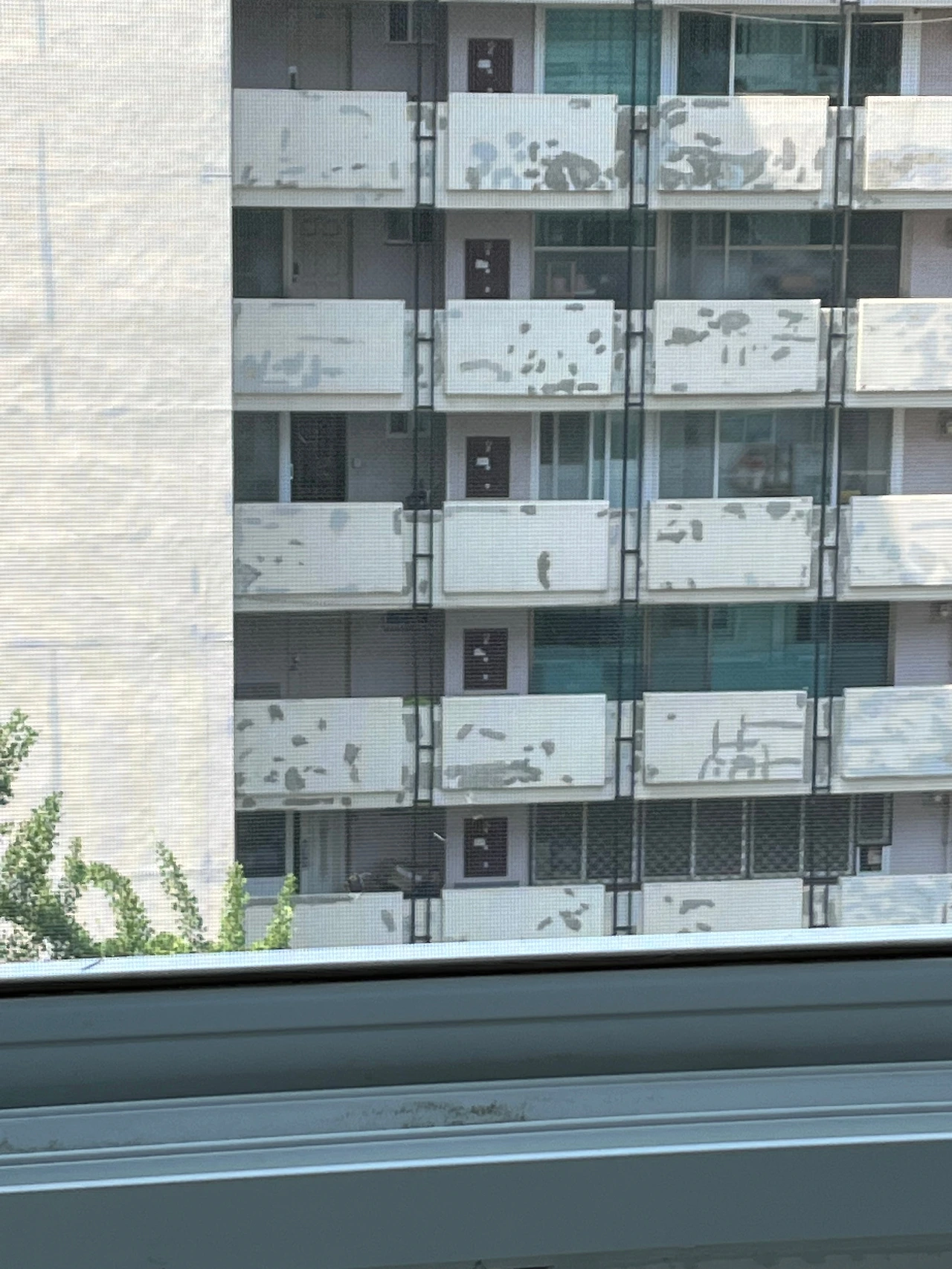 다시 얼룩덜룩한 외벽 이야기로 돌아가서, 외벽은 언제부터 현재의 상태로 멈췄있었는지 알 수 없지만 꽤 오랜 시간 동안 건드리지 않은 것 같다. 이삿날, 부모님이 오셔서는 집과 동네를 둘러보시면서 가장 신경 쓰여하셨던 부분도 바로 이 '외벽'이었다. 재건축 논의가 나온 이후로는 더더욱 도색 가능성이 낮지 않을까 생각했지만, 최근 도색 작업을 진행한다는 공지가 발표되었다. 오래 보면 마치 테라조 무늬 같이 느껴지는 이 외벽도 올해 안에는 자취를 감출 예정이다.