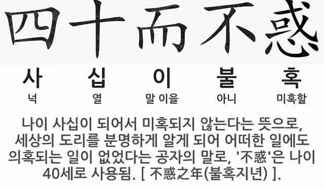 흔히 "사십이불혹"(불혹)이라고 해서 40세를 세상일에 미혹되지 않는 나이라고 표현한다.