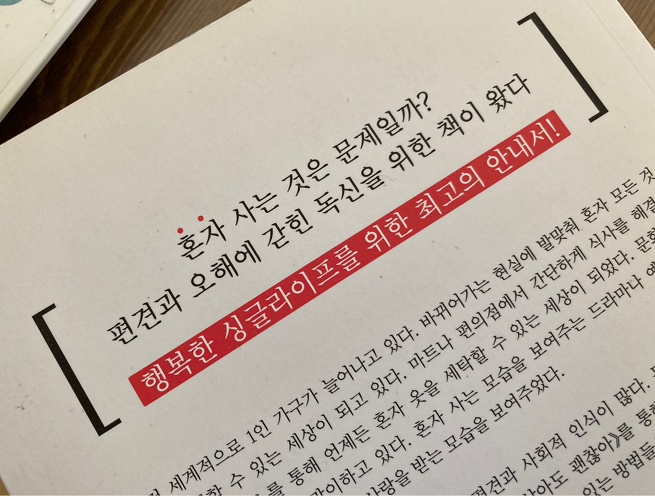 이렇듯 독신 인구가 증가하는 현상은 그들이 접하는 사회적 불이익과 낙인, 편견에도 불구하고 부인할 수 없는 현실이다. 이미 일본은 초식남이라는 단어가 유행하면서 독신을 더욱 선호하는 시대로 접어들었다. 우리나라도 예외는 아니다. 갈수록 힘들어지는 취업과 올라가는 물가, 치쏟는 집값에 살 터전 하나 손쉽게 마련하지 못하는데 아이까지 낳게 되면 먹이고 입히고 교육시키는데만 어마한 돈이 든다. 이런 단순한 경제적, 사회적 문제도 있지만 갈수록 개인의 능력을 인정받고 자신의 삶에 충실하고 싶은 사람들이 늘어나고 있다. 탈물질주의를 지지하며 의미 있는 일에 몰두한다. 확실한 것은 독신으로 사는 모습이 점점 더 우리 삶의 일부가 되어가고 있고, 결혼 생활은 우리 생각 같지 않다는 점이다. 파탄난 결혼생활을 맞이하거나 배우자의 죽음을 감당해야 하는 사람들은 준비가 되어 있지 않다. 믿는 구석이 타인이 아닌 본인이 되어야 한다.