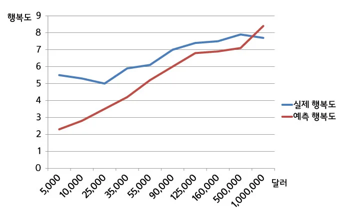 이 모든 게 과연 나완 상관없으니 나몰라 할 일일까? 분명한 건, 사회의 모든 것들은 서로 상호작용을 통한 밸런스를 만들어 흘러간다. 그 덕에 '국가'가 돌아가고 '국가'라는 건 정체성이다. 정체성이 살아진 국가에서, 힘이 사라진 국가 안에서 나 혼자 잘 먹고 잘 산들 그 행복과 만족감이 얼마나 돌아올까. 실제로 돈이란 어느 시점에 다다르면 더 이상 만족감을 안 준다. 이건 과학적인 팩트다. 실로 캐나다 브리티시컬럼비아 대학의 애크닌 연구팀은 돈과 행복에 관한 연구를 보여주었다.