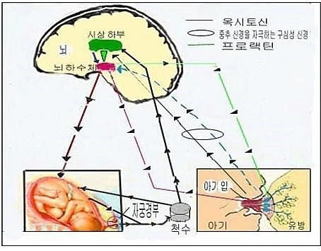 반대 작용을 하는 부적 피드백과 달리 긍정피드백은 초기 자극을 증가시키는 역할을 한다. 반응이 자극과 같은 방향으로 향한다. 대표적인 예로 출산을 들 수 있다. 아기의 머리가 자궁 하부로 이동하면서 진통이 시작되면 증가한 자궁의 압력이 자극 경부의 감각 수용기를 자극한다. 이 신호는 곧 조절 중추인 뇌로 신호를 보내 옥시토신이라는 호르몬을 다량 방출하게 시키고, 옥시토신은 혈액을 타고 자궁으로 전달되어 수축을 더욱 활성화시킨다. 진통이 계속될수록 자궁경부는 더 많은 자극을 느끼고, 출산을 할 때까지 더 많은 옥시토신을 분비하게 된다.