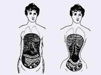 둘째론, 코르셋이라는 물리적인 힘을 이용하여 흉곽을 줄이는 방법이다.