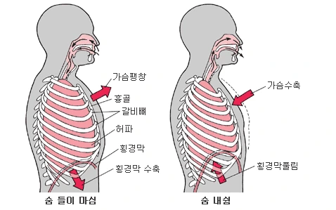 이렇듯 몸통 전체뿐만 아니라 갈비뼈 앞, 뒤 사이사이로도 많은 근육들이 존재하고, 호흡을 위한 ‘작용’을 한다.