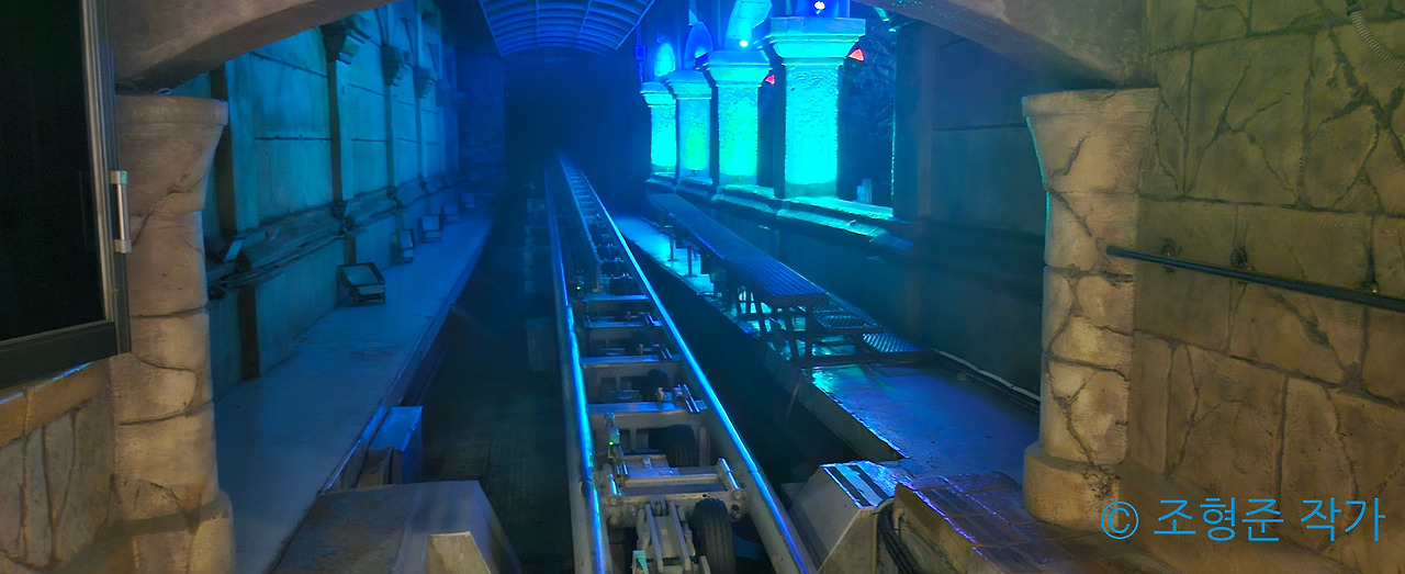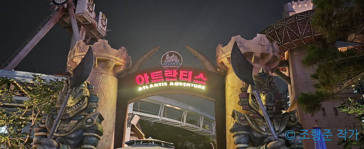마지막 어트렉션은 아트란티스였다. 아트란티스는 내게 있어서 인생 롤러코스텨였다. 이렇게 빠른 급발진과 함께 출발하는 롤러코스터는 이게 처음이었고 처음 탔을 때부터 사랑에 안 빠질 수 없었다. 특히 밤에 타면 스릴이 훨씬 커지기 때문에 아트란티스는 낮보다는 밤에 타는 걸 추천한다. 물론 밤에 타면 애니매트로닉스가 안 보인다는 게 있지만 어차피 낮에 타도 비클 자체의 속도 때문에 애니매트로닉스를 자세히 볼 새도 없이 가버린다.