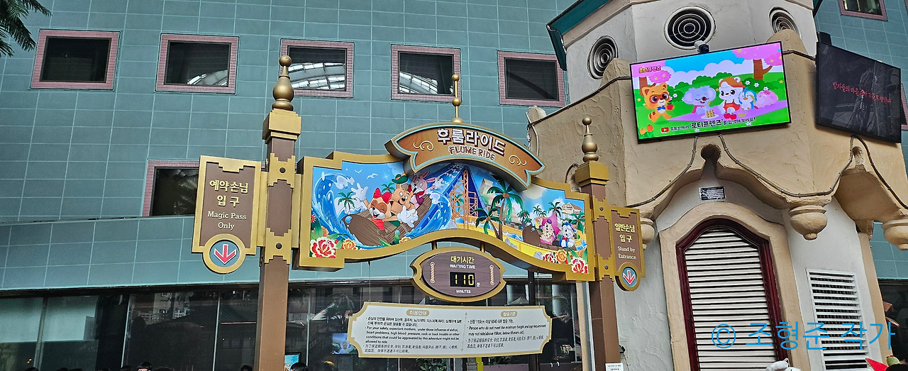 오늘은 2024년 7월 13일이었다. 본격적으로 무더위가 시작될 시점이었다. 나는 이를 알아차리고 곧장 첫 번째로 후룸라이드를 타기 위해 이동했는데 예상대로 대기 시간이 엄청나게 길었다. 무려 110분이었다. 거의 2시간으로 봐도 무방할 정도의 엄청난 인기를 자랑했다. 아무래도 여름인 만큼 물에 젖는다고 해도 그게 시원함으로 작용할 계절이니 그랬다. 이번에도 매직패스를 사용해서 안으로 들어갔다.