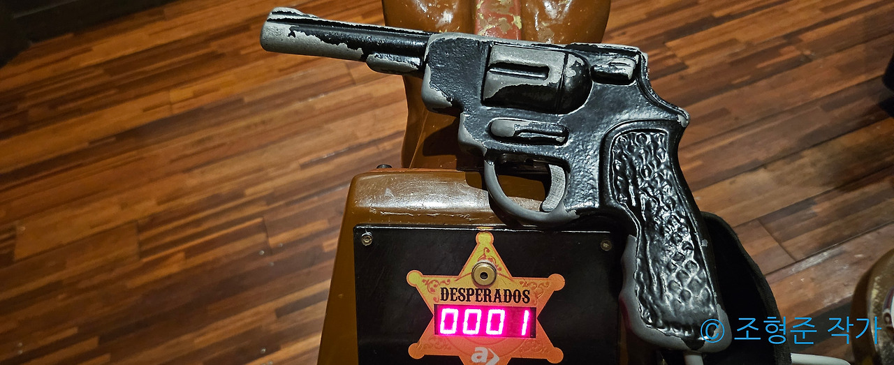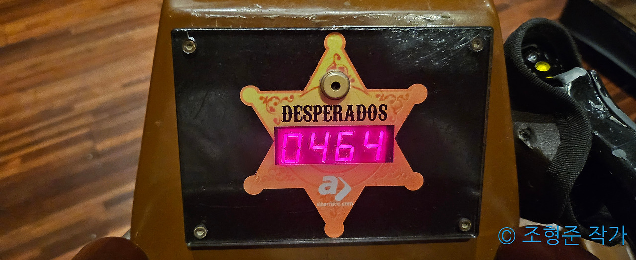 그 외에도 은근히 대기줄 자체가 근사하게 꾸며졌다는 걸 알 수 있는데 마치 서부시대의 술집 같은 분위기를 엄청 많이 느끼게 해주고 있었고 좌석 자체가 말이나 마차로 되어 있어서 몰입감이 강했다. 그리고 총도 낡지만 관리를 잘한 총처럼 되어서 마음에 들었다. 이윽고 3D 안경을 쓰고 본격적으로 총을 쏘기 시작했다. 약 5분 정도 시간이 지나고 나서 내가 얻은 점수는 464점인데 알고 보니 내가 1등이었다. 그래서 더 즐겁게 타지 않았을 까 싶다.
