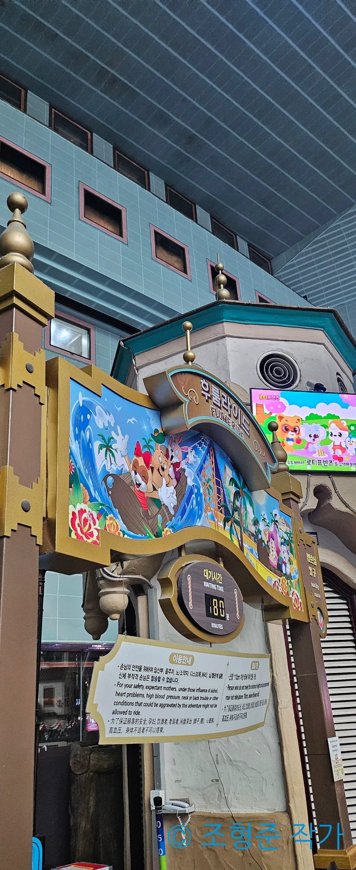 오늘은 2024년 8월 1일이다. 그야말로 여름의 한복판 그 자체였다. 그렇기 때문에 아트란티스를 제외한 나머지 어트렉션은 어드벤처 내에 있는 걸로만 타기로 결정했다. 야외에 있는 매직 아일랜드에서 더위를 견디며 대기를 하는 것은 나와는 안 맞았기 때문이다. 그런 의미에서 첫 번째 어트렉션은 후룸라이드였다. 특히나 후룸라이드는 여름만 되면 엄청난 인기를 자랑한다. 거의 줄이 회전바구니까지 갈 정도이니 말이다. 오늘도 180분에 달했다.
