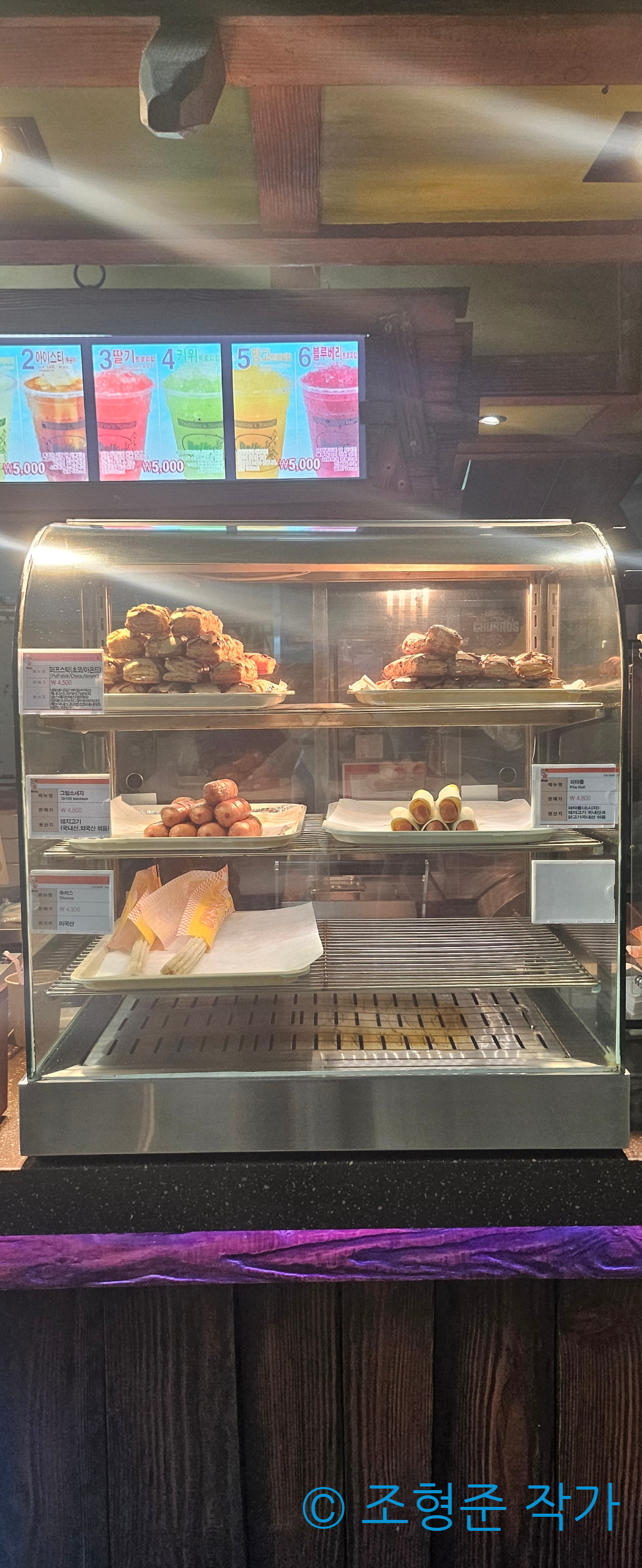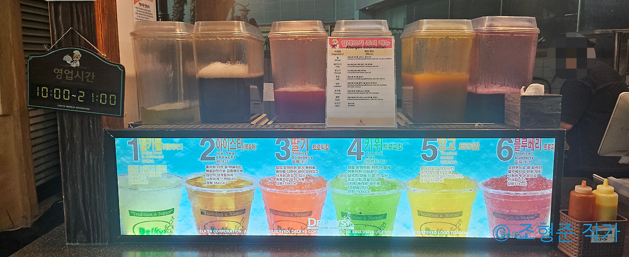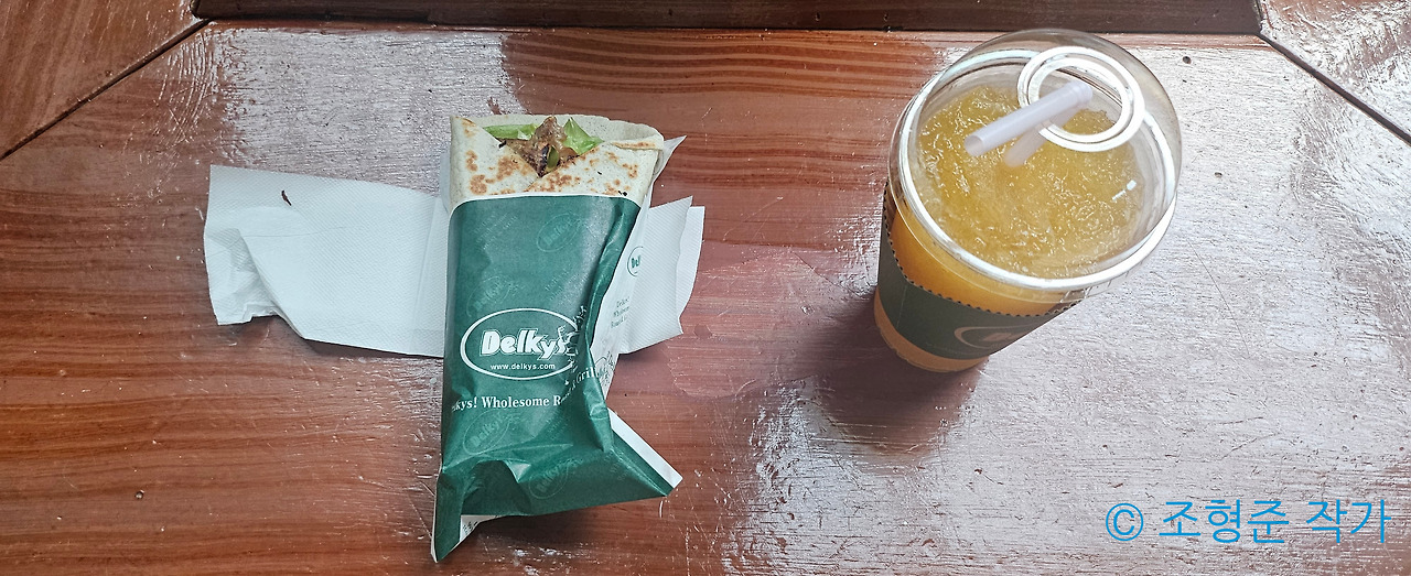 그렇게 후룸라이드를 타고 곧장 근처에 있는 델키스로 갔다. 델키스는 롯데월드 어드벤처 내 가장 가성비가 있는 음식점인데 케밥을 전문으로 하고 있는데 가격이 상당히 저렴해서 추천하고 싶다. 내가 고른 메뉴는 치킨 케밥과 망고 슬러쉬였다. 이 중에서 치킨 케밥은 단맛을 제공하는 치킨과 쫄깃한 빵이 서로 조화를 이뤄서 만족스러웠다. 그리고 망고 슬러쉬도 망고의 달달한 맛과 시원함이 치킨 케밥에서 부족한 촉촉함을 보완해주고 있어서 앞으로도 가끔씩 이 조합으로 먹을 듯하다.