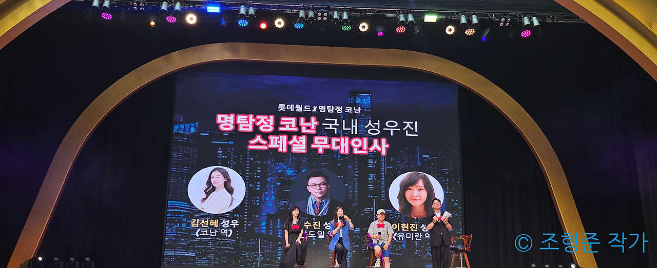 오늘은 2024년 8월 8일이었고 인생에서 가장 행복한 순간 중 하나였다. 바로 명탐정 코난의 국내 성우진의 특별 무대인사가 있었기 때문이었다. 그래서 행사 시작 2시간 전부터 자리를 미리 잡았다. 그 덕분에 가까운 위치에서 코난 역의 김선혜 성우와 남도일 역의 정수진, 유미란 역의 이현진 성우를 만날 수 있었다. 진짜 성우를 이렇게나 가깝게 볼 수 있는 기회는 거의 없기 때문에 너무 행복한 순간이었다. 그리고 코난과 로티와 로리도 등장했었는데 사진 속 로티와 로리의 모습을 잘 기억하면 시즌 2의 가장 큰 재미 포인트가 될 것이라고 생각한다.
