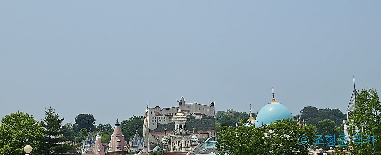 그렇게 썬더폴스를 타고 나서 다시 한 번 에버랜드를 찬찬히 둘러봤다. 워낙 에버랜드가 규모가 크기 때문에 마치 산책하듯이 구경해봐도 시간이 꽤 많이 걸렸다. 마치 액자처럼 밑에 있는 분수를 촬영할 수가 있는 프레임 형태의 포토존, 아예 경비행기 모형을 위에 띄어놓은 오리엔탈 스테이션이라는 레스토랑, 작은 규모로 만들어진 계곡과 다양한 종류의 잉어까지 만날 수 있었다.