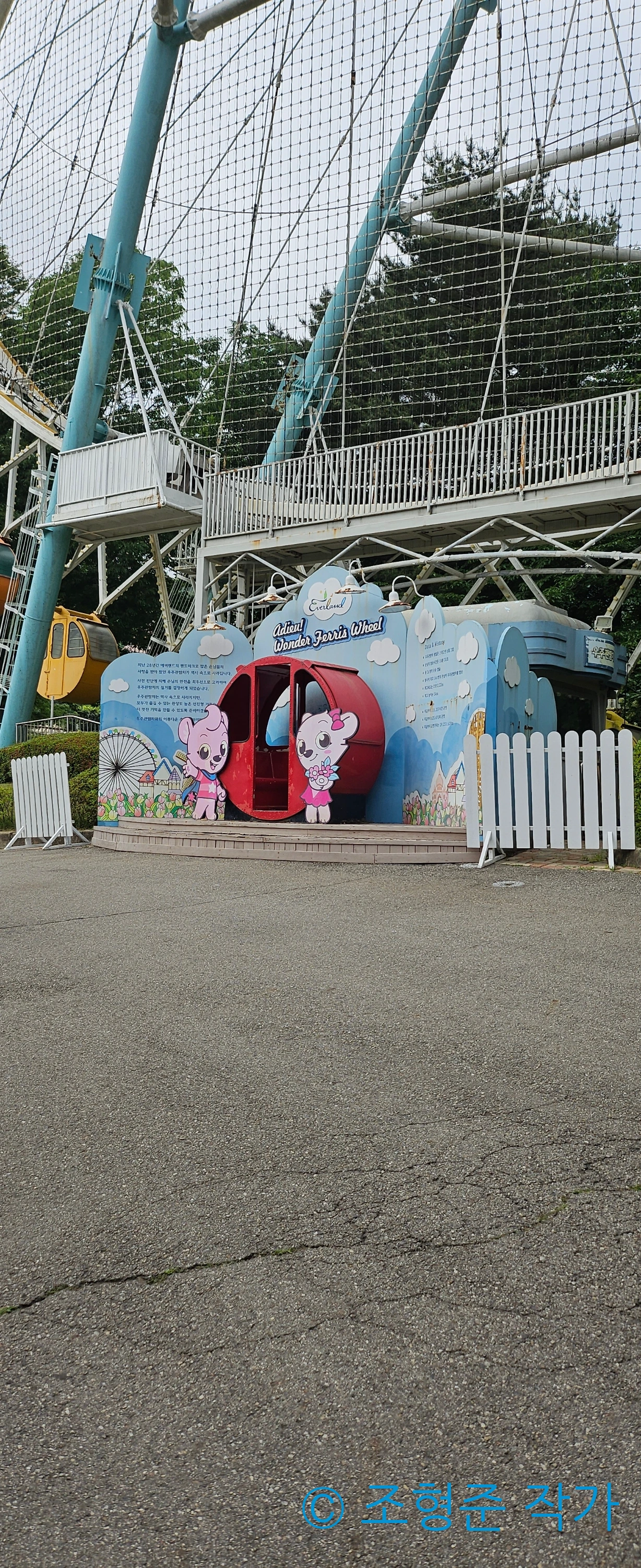 아마존 익스프레스를 탄 이후 잠시 휴식차 에버랜드를 둘러봤다. 에버랜드에는 퇴역한 상태임에도 아직도 생존한 놀이기구가 하나 있다. 그건 바로 우주관람차이다. 우주관람차 앞에는 우주관람차 비클이 진열되어 있고 그 옆에 우주관람차에 대한 간단한 약력이 적혀 있다. 이를 보면 에버랜드가 얼마나 우주관람차에 대해서 애정을 간직하고 있는지를 잘 알 수 있었다.