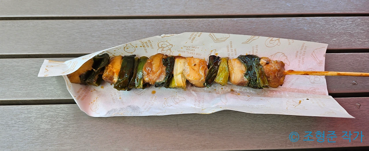 세 번째 간식은 아마존 익스프레스 근처에 있는 타무스낵의 간장파닭꼬치로 가격은 5,800원이었다. 여러모로 꽤 추천하고 싶은 간식이었다. 우선 이름 그대로 간장 소스에 다른 닭과 파를 꼬치에 꽂은 것이지만 간장 소스의 맛이 상당히 좋았고 닭은 부드러웠고 파는 약간의 아삭거리는 식감이 있어서 서로 조화를 이루고 있다는 게 테마파크의 간식이라고 하기에는 여러모로 좋았다.