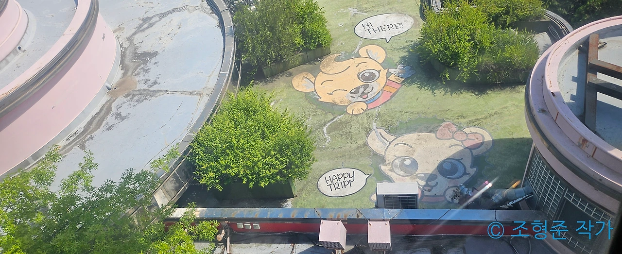 여기서 그동안 나만 알고 있었던 한 가지 팁을 말하면 스카이 크루즈를 탑승할 때 락스빌 구역에 위치하는 KFC의 옥상을 자세하게 보면 에버랜드의 마스코트인 레니와 라라를 만날 수 있다. 이건 스카이 크루즈를 탄 사람만 볼 수 있으니 스카이 크루즈를 타게 된다면 한 번 유심히 바라보길 추천한다. 사진처럼 레니와 라라가 당신을 응원하는 것을 볼 수 있을 것이다.