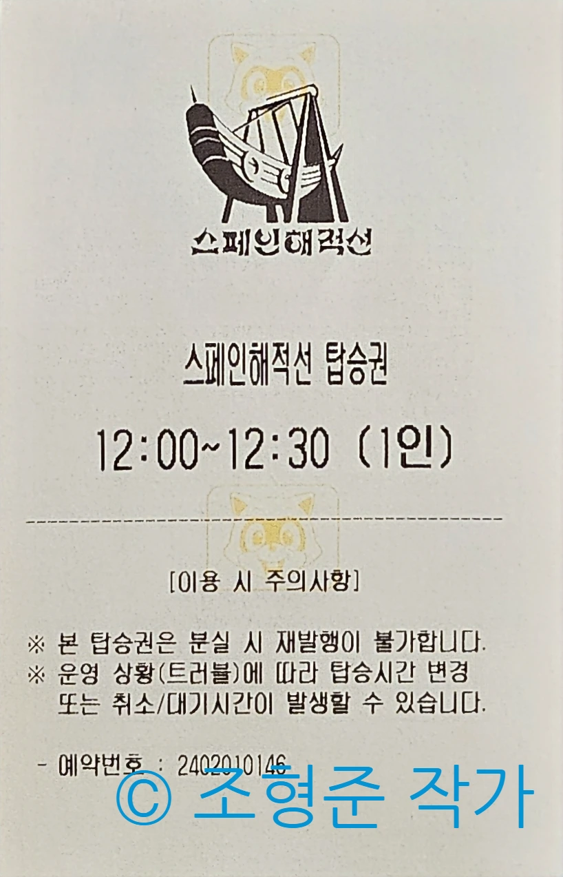 이후 팝콘팩토리 바로 옆에 있는 어트렉션인 스폐인해적선으로 가서 탑승예약을 받았다. 여기는 오전 10시, 오후 1시, 오후 5시로 있었다. 다행히 탑승예약증을 받는데 성공했다. 탑승예약증에는 정오부터 12시 30분 사이라고 적혀 있었다.