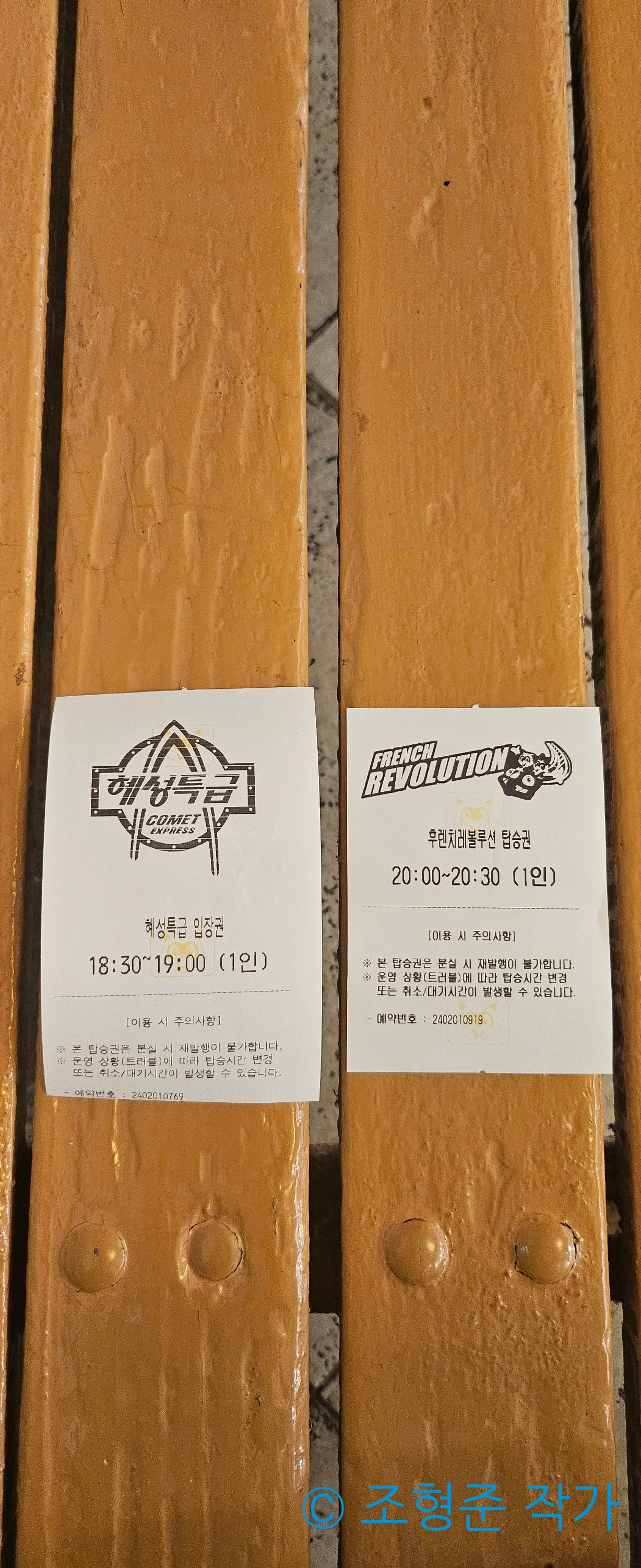 오늘도 오후 5시에 진행된 탑승예약증 발부를 사용해서 두 어트렉션을 예약할 수 있었다. 혜성특급은 오후 6시 30분부터 7시였고 후렌치 레볼루션은 오후 8시부터 8시 30분까지였다. 다행히 이번에는 각 예약시간이 1시간 정도라서 엄청 바쁘게 움직일 필요는 없었다.