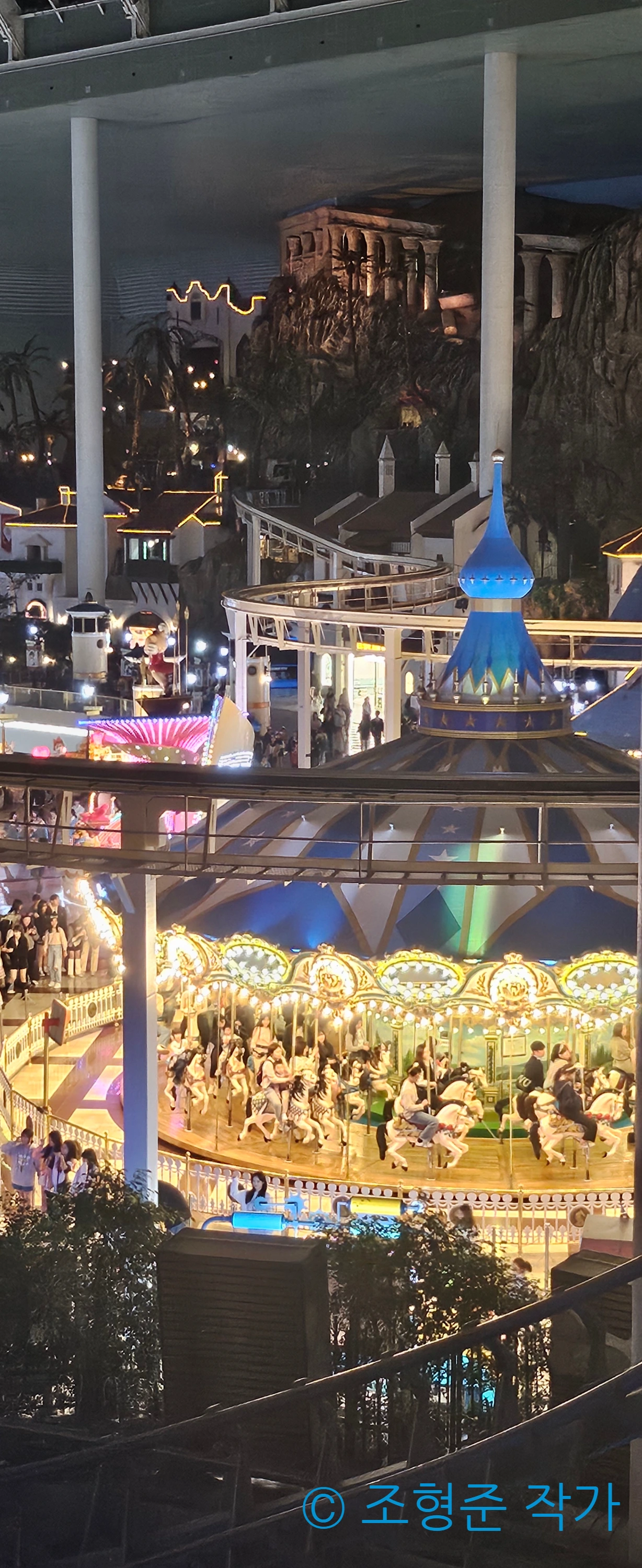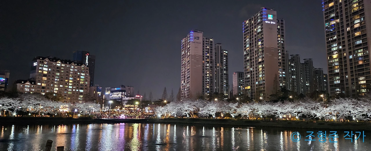 아트란티스를 타고 나오는 길에 보이는 풍경을 보니 말 그대로 장관이었다. 아파트에서 나오고 있는 불빛이 물에 반사되고 나무들에는 벚꽃이 만개했다. 이런 풍경은 벚꽃이 만개한 지금 밖에 볼 수 없기 때문에 더 귀중한 사진이 되었다. 이후에는 어트렉션 대기 시간이 마감된 시간이라서 어드벤처로 넘어가서 단체 이용객이 사라져서 상당히 한적해진 롯데월드 어드벤처를 즐겼다.